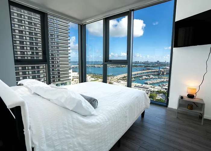 O Downtown Miami 2Br Retreat - Walk To Bayside & Port - Sleeps 6 Apartamento de 93 m² está situado a caminhada de 7 minutos do Paseo en barco e dispõe de piscina ao ar livre. Com terraço com vistas para o mar, este apartamento está situado a alguns passos do Mercado Bayside.